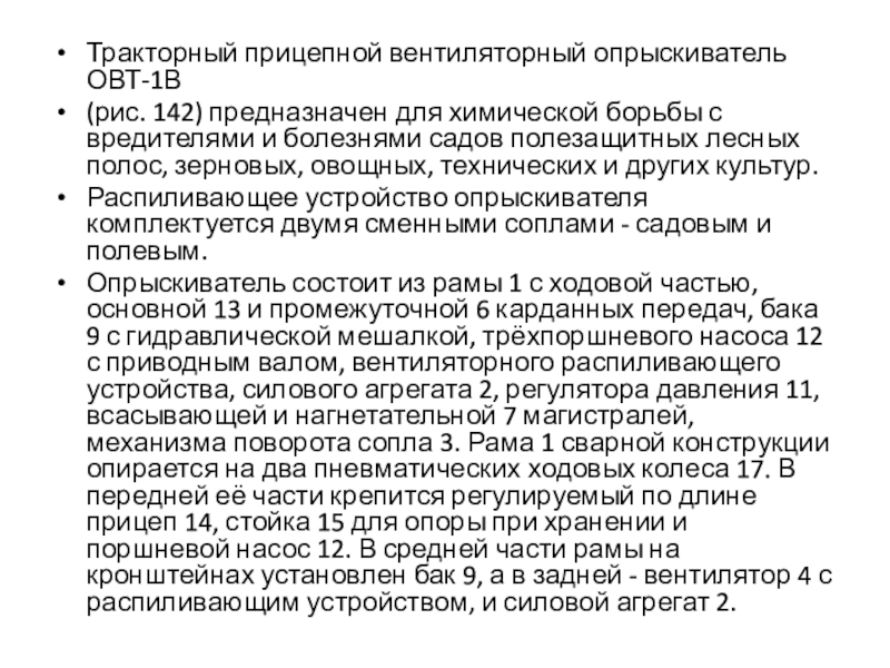Слайд 27Тракторный прицепной вентиляторный опрыскиватель ОВТ-1В