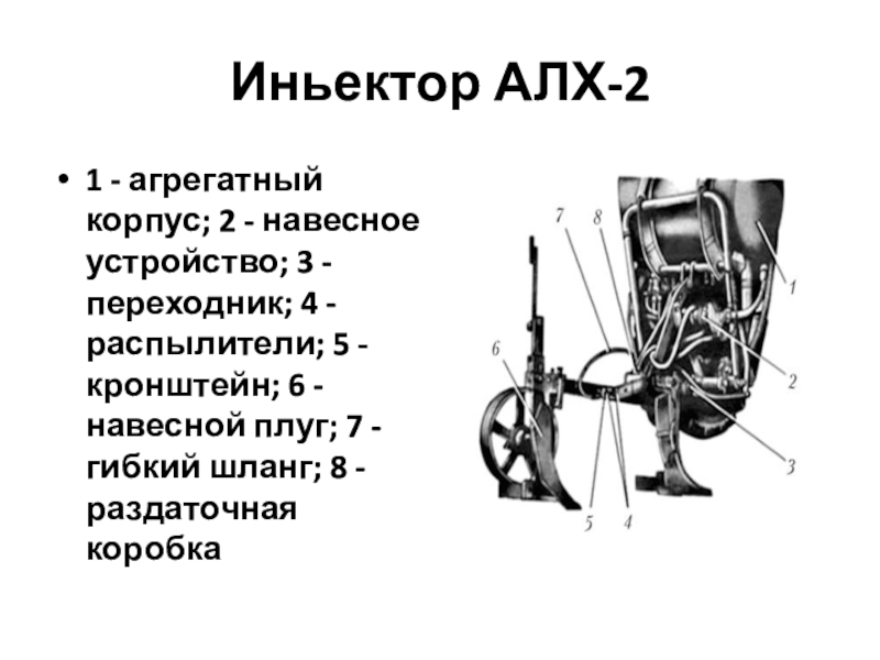 навесной плуг; 7 - гибкий шланг; 8 - раздаточная коробка