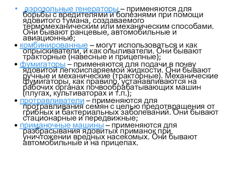 Слайд 3 аэрозольные генераторы – применяются для борьбы с вредителями и