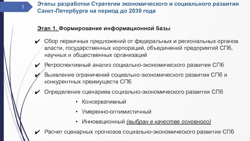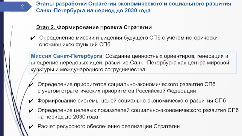 Определение целевых показателей социально-экономического развития СПб на период до 2030 года
