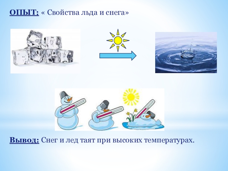 Слайд 7ОПЫТ: « Свойства льда и снега»