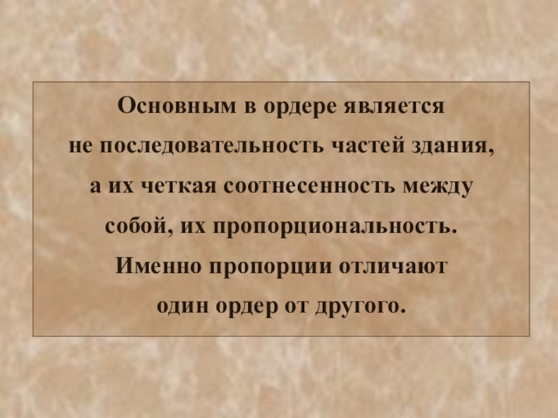 Основным в ордере является не последовательность частей здания, а их четкая соотнесенность между собой, их пропорциональность.Именно пропорции