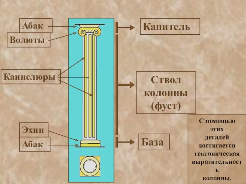 С помощьюэтихдеталейдостигаетсятектоническаявыразительностьколонны.