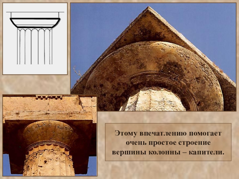 Вместе с работой над простотой и ясностью конструкциигреческие архитекторы много работалинад зрительным впечатлением от постройки.Одна и та