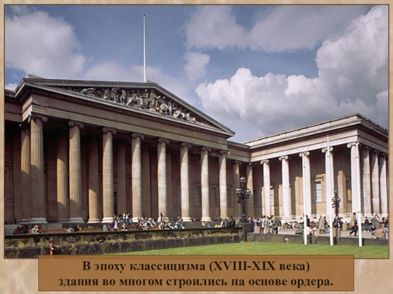 В эпоху классицизма (XVIII-XIX века)здания во многом строились на основе ордера.