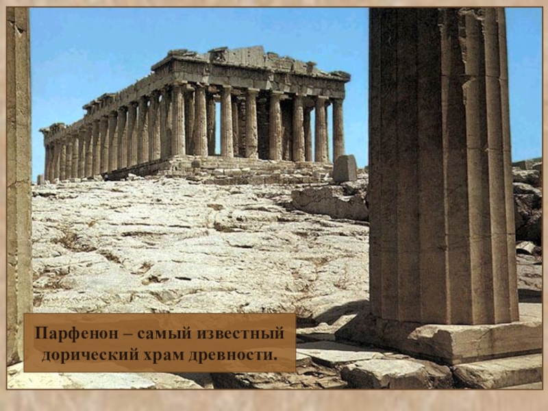 Пропорции дорического ордера делают егомассивным, тяжелым.Не случайно дорические храмы называли «мужскими».