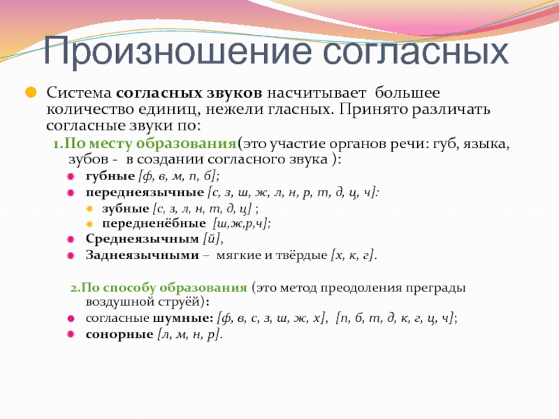 Система согласных звуков насчитывает большее количество единиц, нежели гласных.