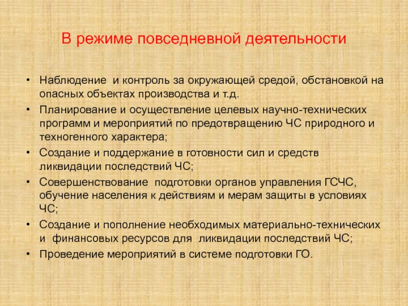 организация разработки и выполнения государственных целевых и научно-технических программ, направленных на предупреждение ЧС, защиту человека и среды его обитания, повышение устойчивости функционирования объектов хозяйствования и социальной сферы при возникновении аварий, катастроф, стихийных и экологических бедствий, эпидемий, эпизоотий, эпифитотий;