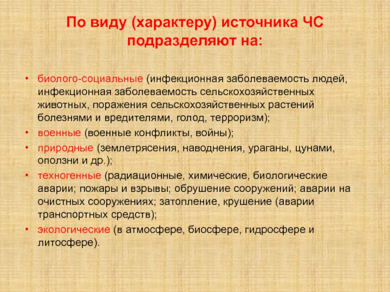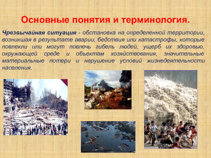 природные (землетрясения, наводнения, ураганы, цунами, оползни и др.);
