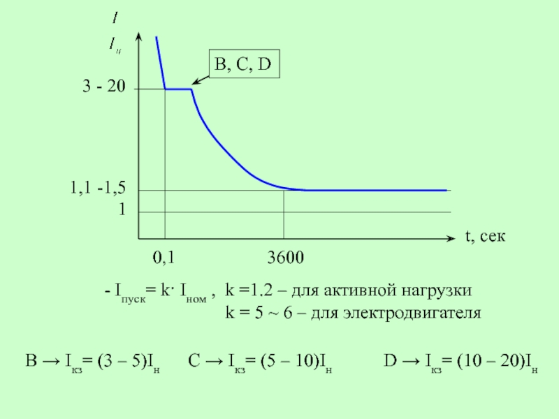 B → Iкз= (3 – 5)Iн С → Iкз= (5 – 10)Iн D → Iкз= (10 – 20)Iн