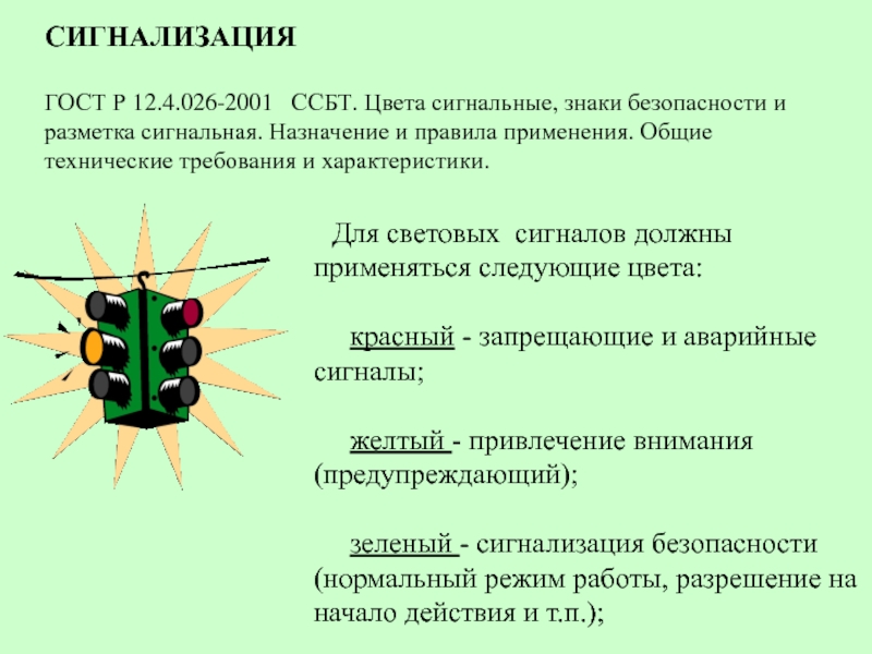 ГОСТ Р 12.4.026-2001 ССБТ. Цвета сигнальные, знаки безопасности и разметка сигнальная. Назначение и правила применения. Общие технические требования и характеристики.