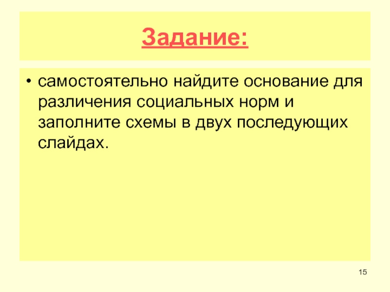 самостоятельно найдите основание для различения социальных норм и заполните схемы