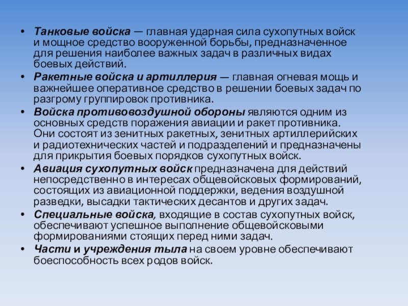 Слайд 4Танковые войска — главная ударная сила сухопутных войск и мощное средство вооруженной