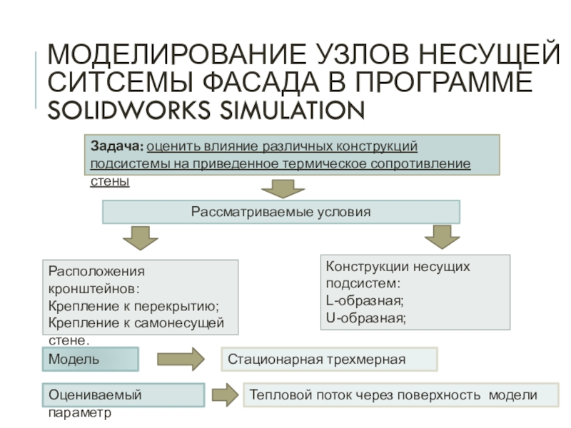 Слайд 24Моделирование узлов несущей ситсемы фасада в программе solidworks simulation