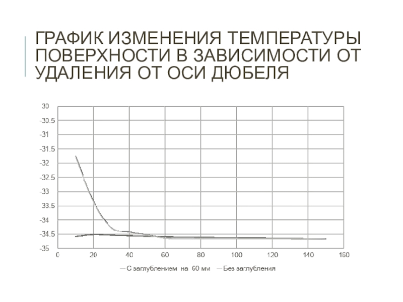 Слайд 22График изменения температуры поверхности в зависимости от удаления от оси