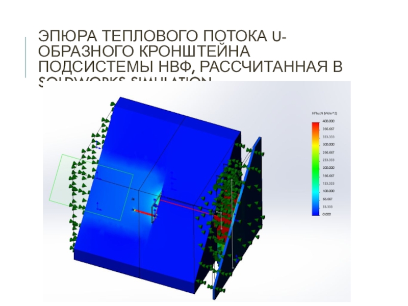 Слайд 30Эпюра теплового потока U-образного кронштейна подсистемы НВФ, рассчитанная в soldworks