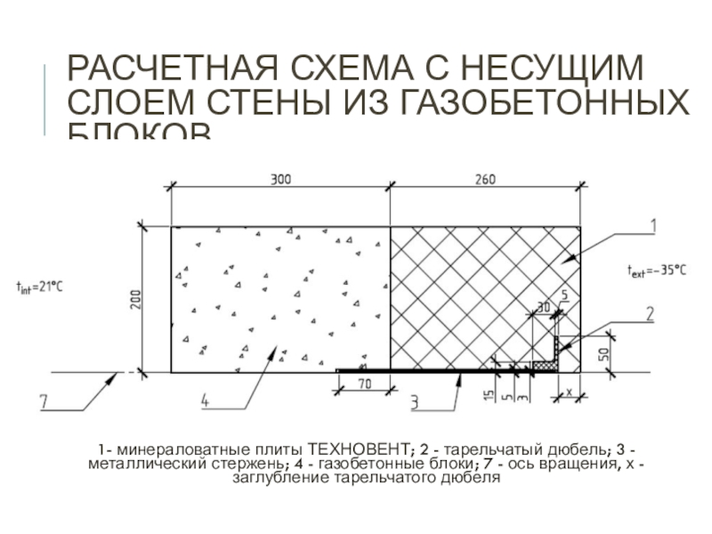 Слайд 14Расчетная схема с несущим слоем стены из газобетонных блоков