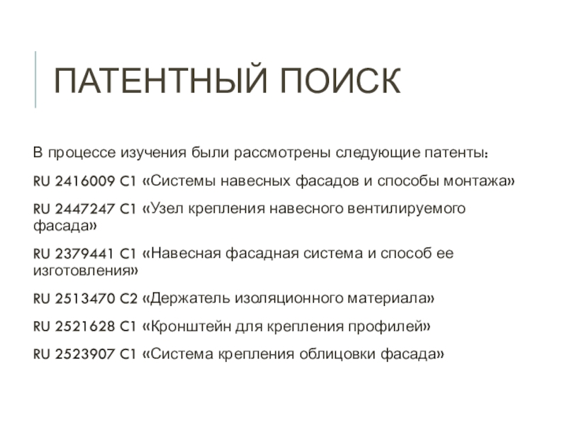 Проведение патентного поиска с выполнением анализа изобретений в области исследуемого