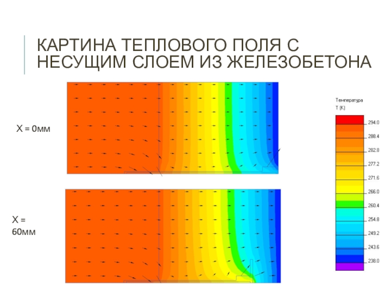 Слайд 18Картина теплового поля с несущим слоем из железобетона