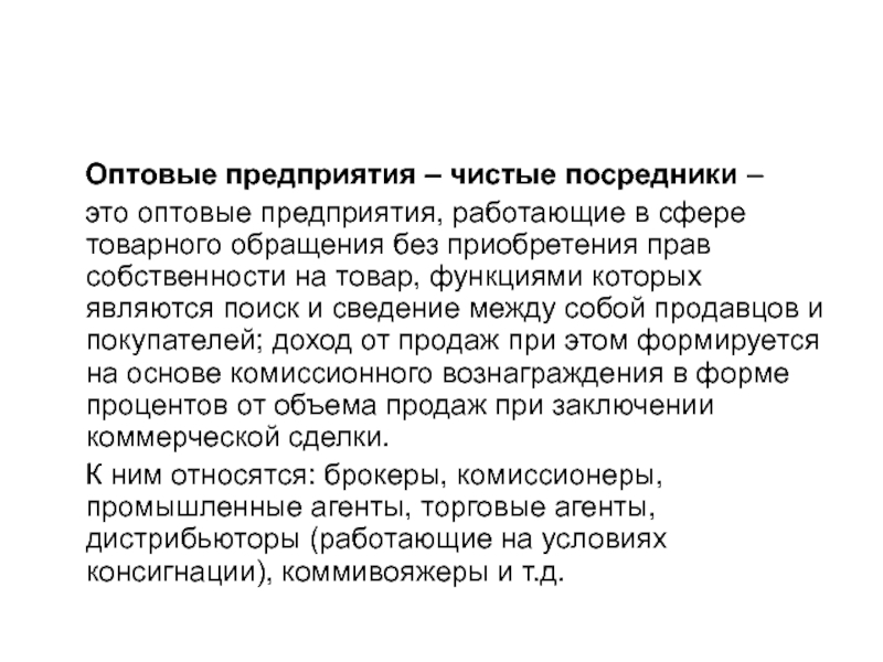 Слайд 47 Оптовые предприятия – чистые посредники –