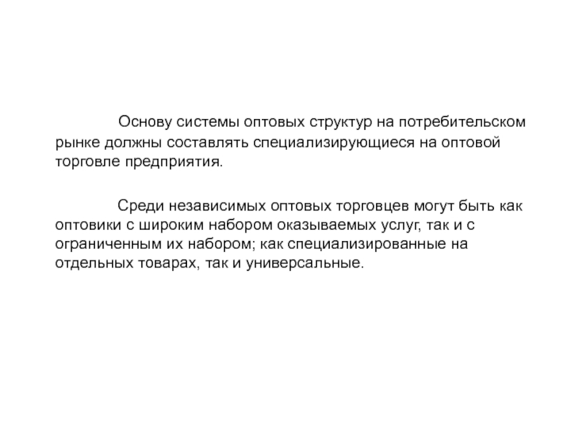 на потребительском рынке должны составлять специализирующиеся на оптовой торговле предприятия.