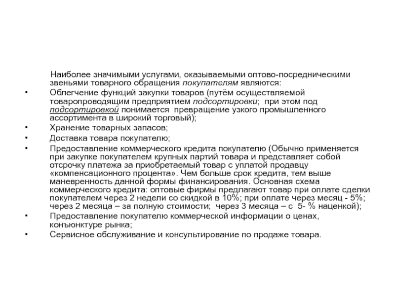 обслуживания, по сравнению с оптовиками с полным циклом обслуживания предоставляют