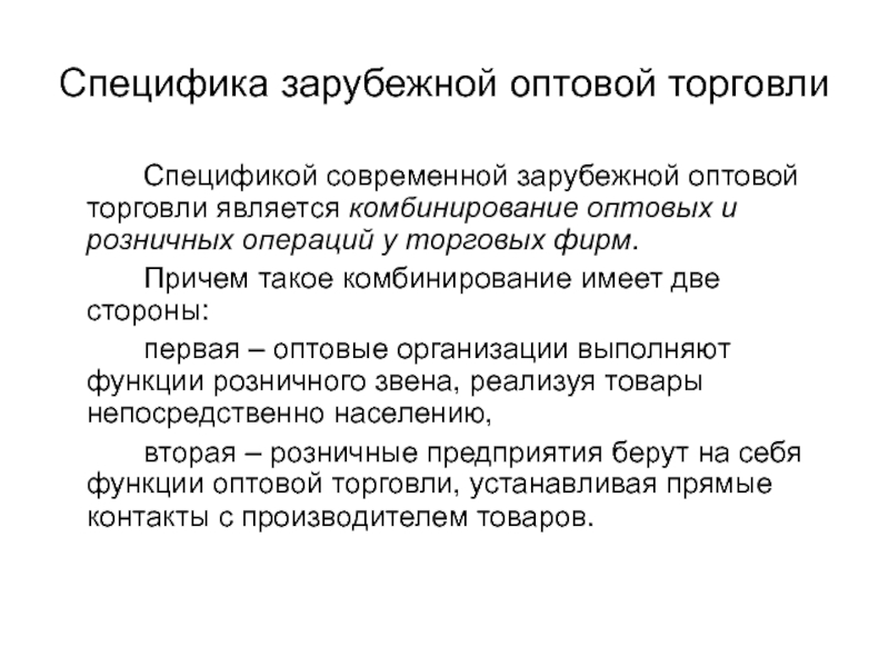 современной зарубежной оптовой торговли является комбинирование оптовых и розничных операций