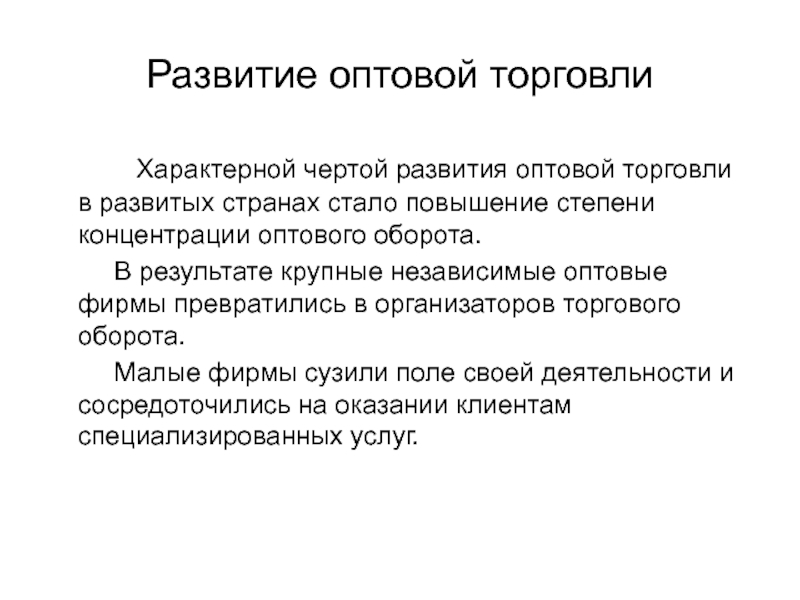 оптовой торговли в развитых странах стало повышение степени концентрации оптового