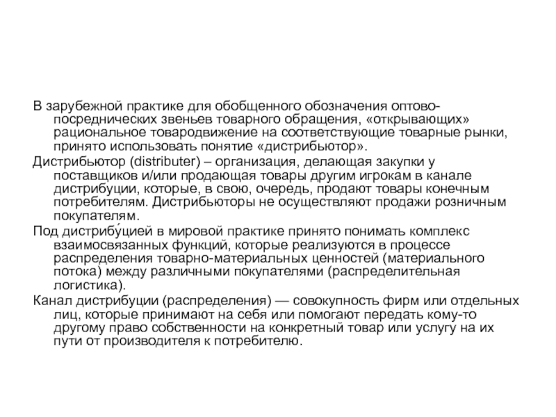 Слайд 51В зарубежной практике для обобщенного обозначения оптово-посреднических звеньев товарного обращения,