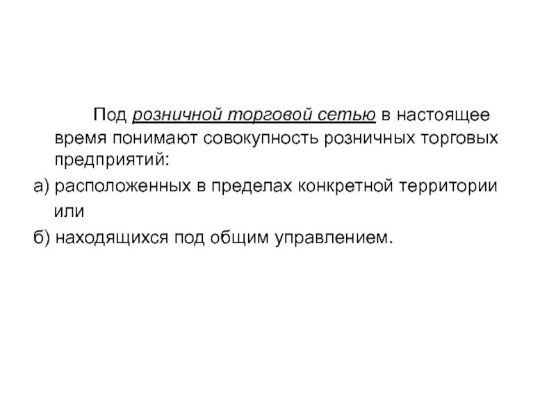 Под торговыми цепями в мировой практике стали понимать торговые сети, имеющие более 10 магазинов.