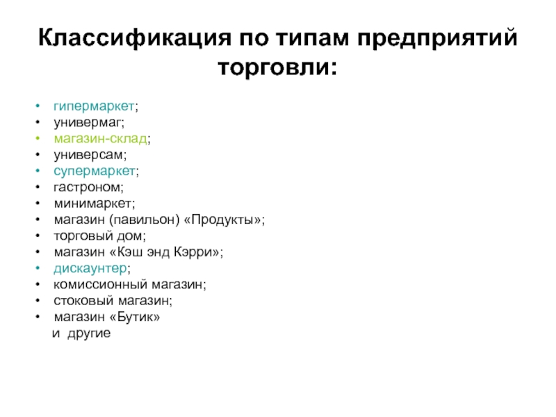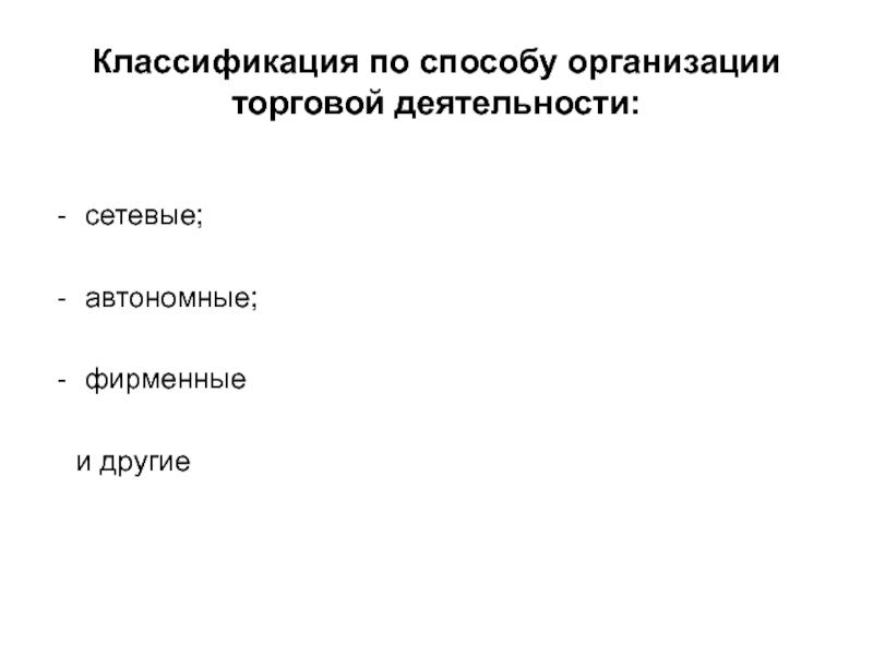 Слайд 32Дополнительные классификации розничной торговой сети (используемые на практике):