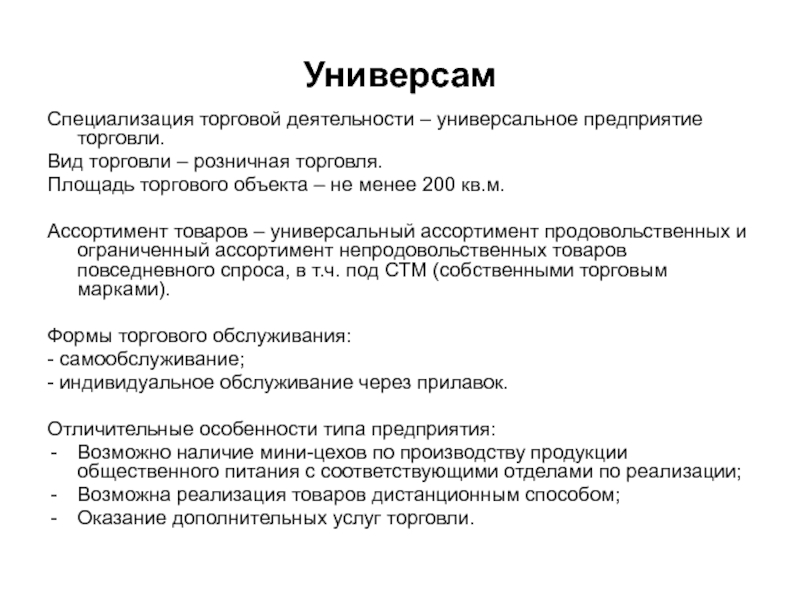 универсальный ассортимент продовольственных и/или непродовольственных товаров);