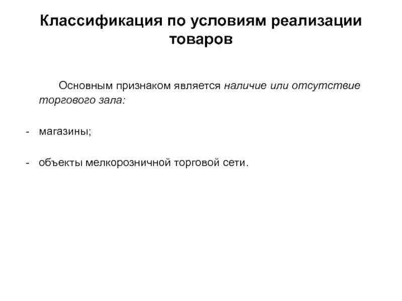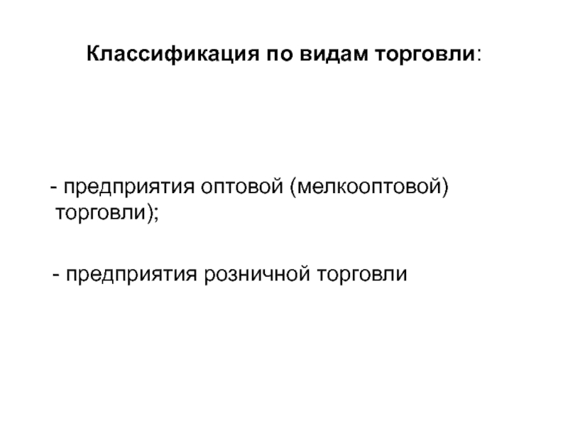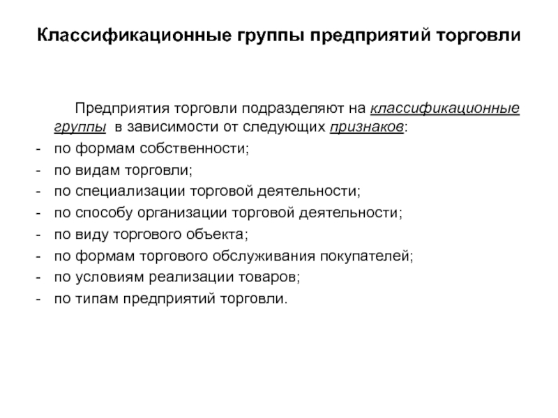 торговли подразделяют на классификационные группы в зависимости от следующих признаков: