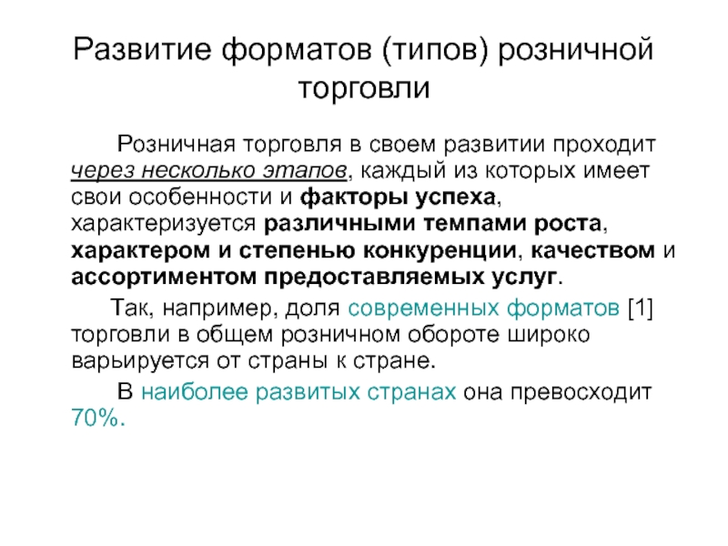 Розничная торговля в своем развитии проходит через несколько этапов, каждый