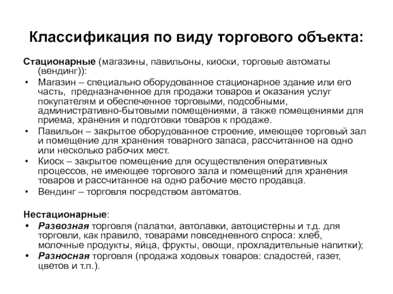 Стационарные (магазины, павильоны, киоски, торговые автоматы