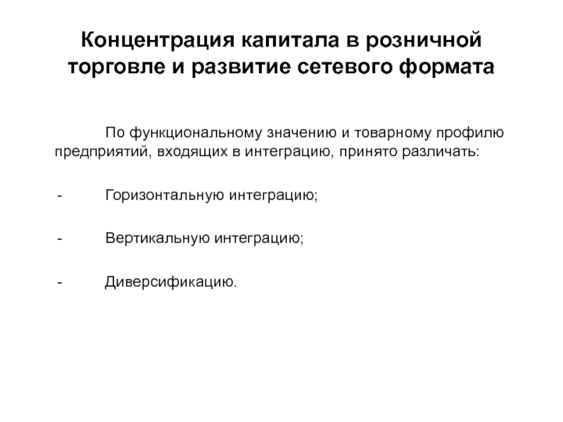 Слайд 37Концентрация капитала в розничной торговле и развитие сетевого формата