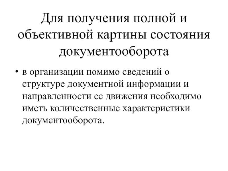 Слайд 31Для получения полной и объективной картины состояния документооборота