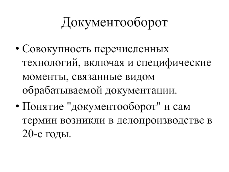 Понятие "документооборот" и сам термин возникли в делопроизводстве в 20-е