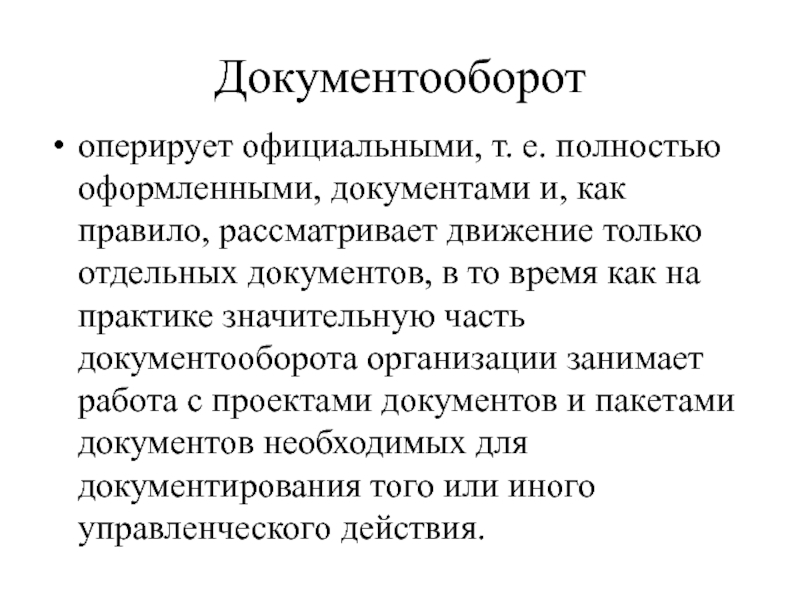 оперирует официальными, т. е. полностью оформленными, документами и, как