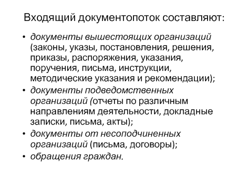 Нисходящие потоки — это документы, направляемые вышестоящими органами власти и управления подчиненным организациям.