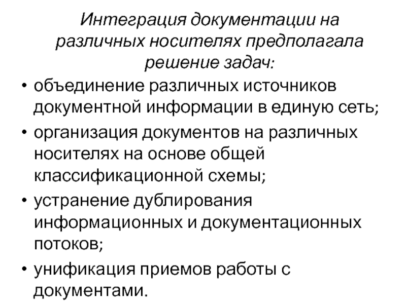 Слайд 12Интеграция документации на различных носителях предполагала решение задач: