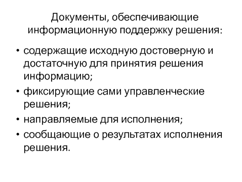 Слайд 18Документы, обеспечивающие информационную поддержку решения: