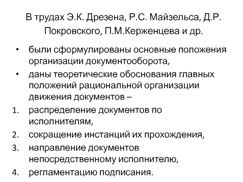 Слайд 7В трудах Э.К. Дрезена, Р.С. Майзельса, Д.Р.Покровского, П.М.Керженцева и др.