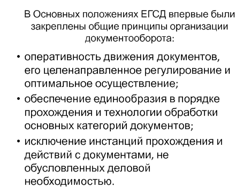 Слайд 11В Основных положениях ЕГСД впервые были закреплены общие принципы организации