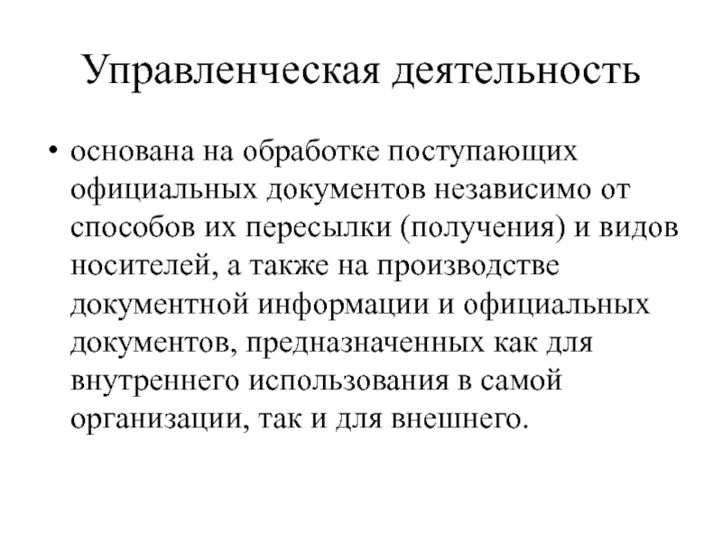 производстве документной информации и официальных документов, предназначенных как для внутреннего использования в самой организации, так и для внешнего.