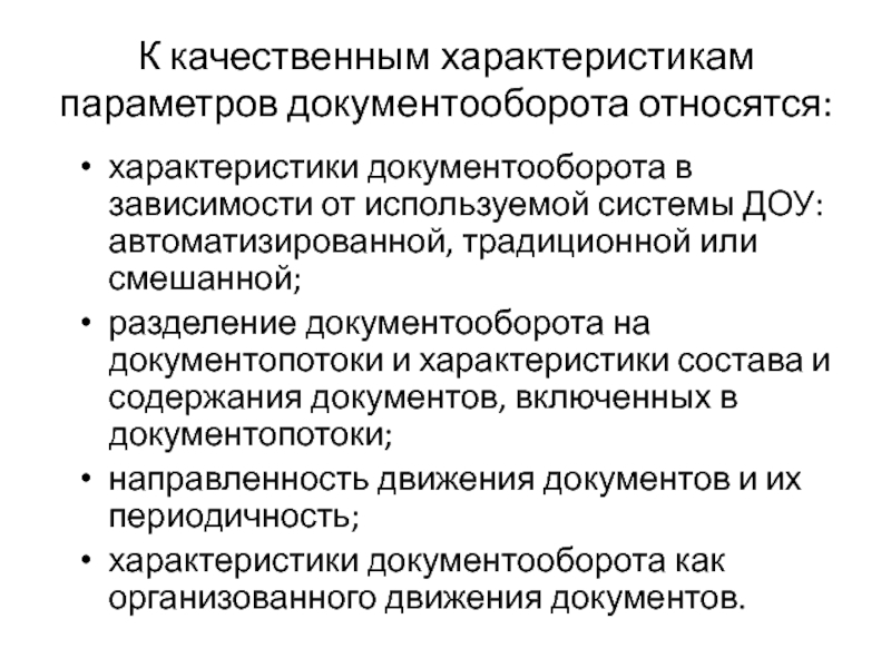 Слайд 37К качественным характеристикам параметров документооборота относятся: