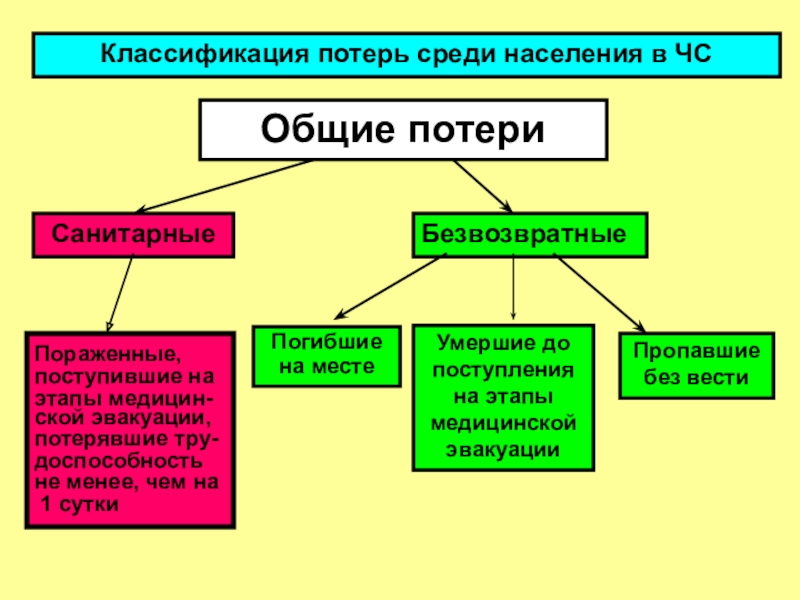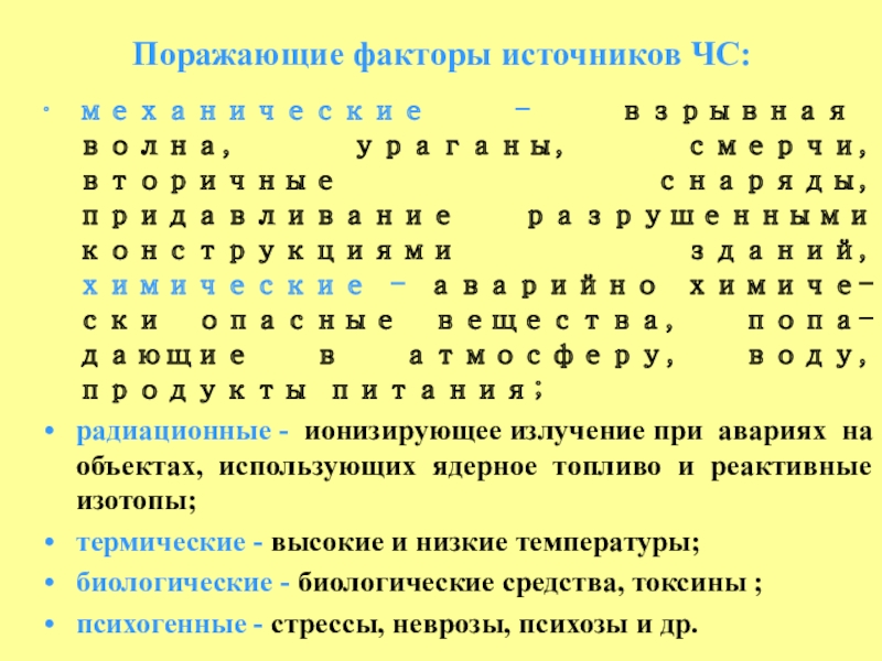 снаряды, придавливание разрушенными конструкциями зданий, химические - аварийно химиче-ски опасные