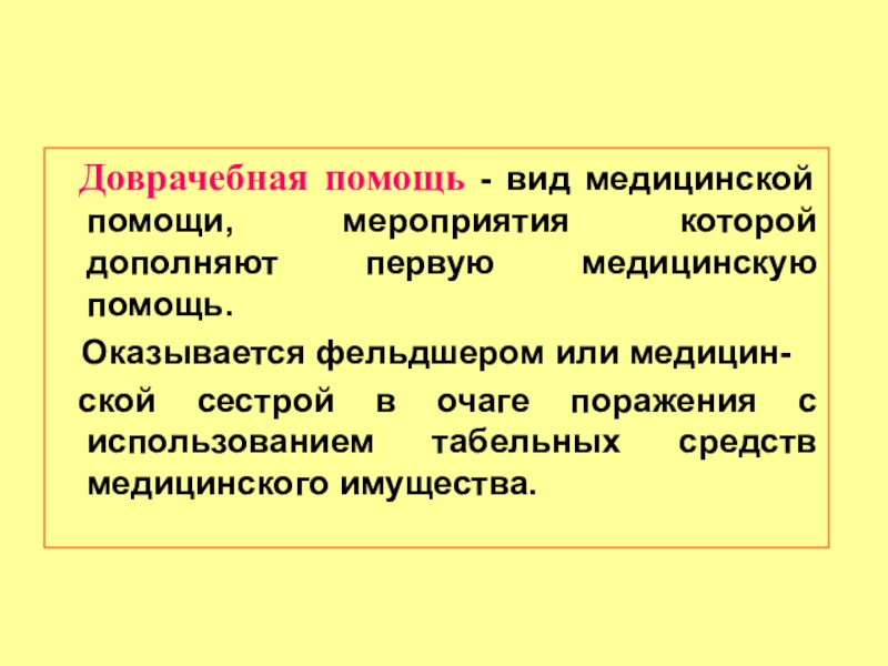 Слайд 12 Доврачебная помощь - вид медицинской помощи, мероприятия которой дополняют
