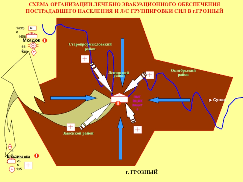 СХЕМА ОРГАНИЗАЦИИ ЛЕЧЕБНО ЭВАКУАЦИОННОГО ОБЕСПЕЧЕНИЯ ПОСТРАДАВШЕГО НАСЕЛЕНИЯ И Л/С ГРУППИРОВКИ