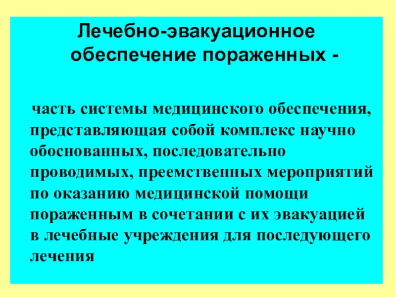 Слайд 4Лечебно-эвакуационное обеспечение пораженных -